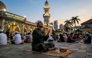 Sore hujan rintik. Kajian jelang berbuka yang diasuh Wak Modin tetap dihadiri banyak warga kampung....