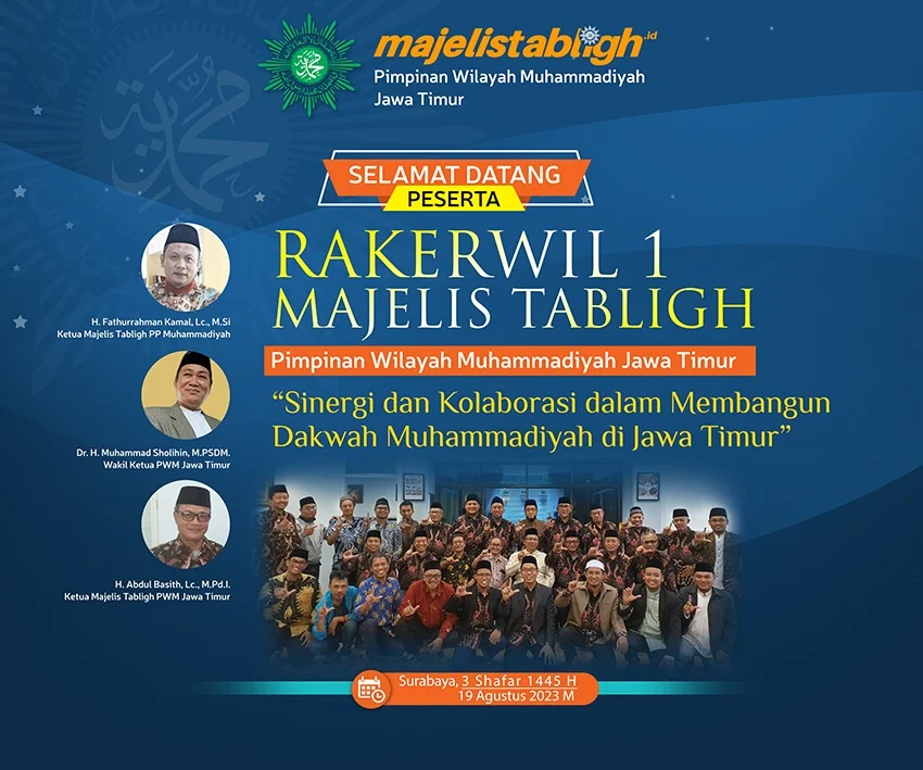 Sebanyak 207 peserta siap menyukseskan Rapat Kerja Wilayah (Rakerwil) 1 Majelis Tabligh PWM Jatim. Kegiatan tersebut akan digelar di Aula KH Mas Mansur PWM Jatim, Sabtu (19/8/23).