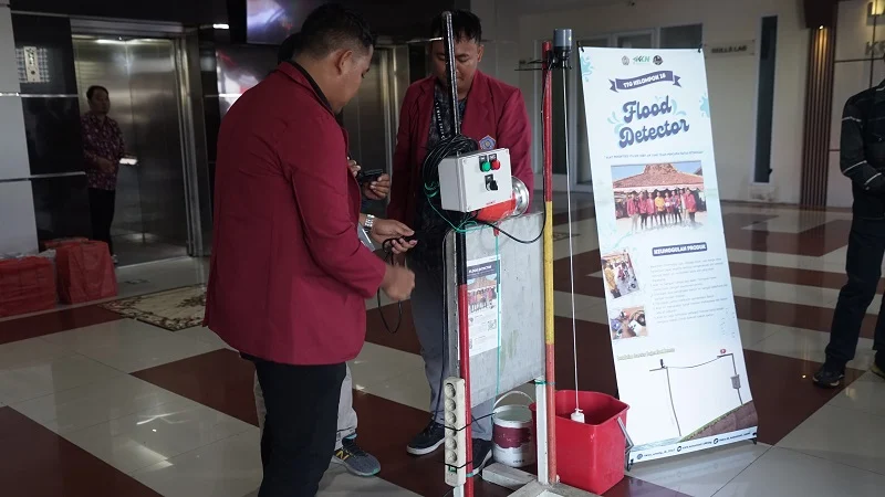 Mahasiswa kelompok 18 Kuliah Kerja Nyata (KKN) Universitas Muhammadiyah Surabaya (UM Surabaya) berhasil menciptakan flood detector atau alat pendeteksi volume debit air yang telah mencapai batas ketinggian. Inovasi tersebut diterapkan di Desa Kebomlati Kecamatan Plumpang Kabupaten Tuban.