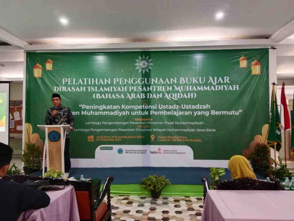 Dalam upaya meningkatkan kompetensi, Lembaga Pengembangan Pesantren (LP2) Pimpinan Pusat Muhammadiyah bekerja sama dengan LP2 Pimpinan Wilayah Muhammadiyah (PWM) Jawa Barat menyelenggarakan pelatihan penggunaan buku ajar berbahasa Arab pada Jumat-Ahad (29-31/12/2023) di Aisyiyah Boarding School (ABS) Bandung.