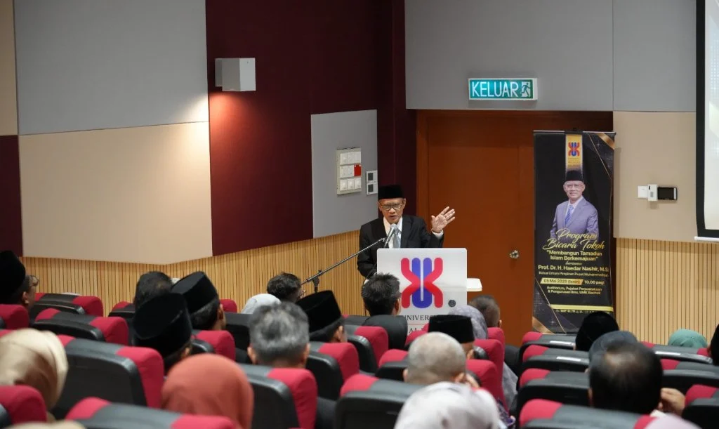 Ketua Umum Pimpinan Pusat Muhammadiyah Prof. Haedar Nashir menyampaikan pesan penting tentang persatuan dan kemajuan dunia Islam dalam kuliah umum yang digelar di Universiti Malaysia Kelantan (UMK) pada Senin (5/5/2025).