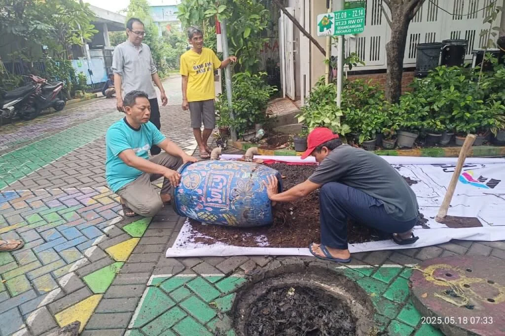 Heri Sugiono, kader lingkungan setempat, menambahkan kegiatan dilanjutkan dengan pembukaan tutup sumur resapan yang digunakan sebagai tempat pengomposan daun dan ranting.