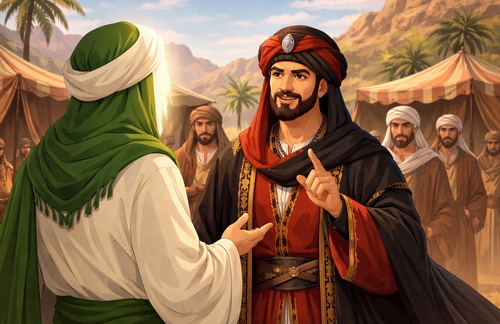 Nabi saw sama sekali tidak menyangka bahwa beliau sedang ditunggu-tunggu oleh ‘Utbah di rumah pamannya. Oleh sebab itu, setibanya di rumah Abu Thalib beliau sedikit tercengang melihat ‘Utbah ada di situ. Kemudian Nabi saw duduk berhadapan dengan ‘Utbah.