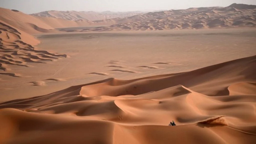 Karena takut ditangkap, sopir menurunkan penumpangnya di tengah gurun Jumum. Tak ada pohon, tak ada teduh, hanya langit dan pasir yang saling membakar.