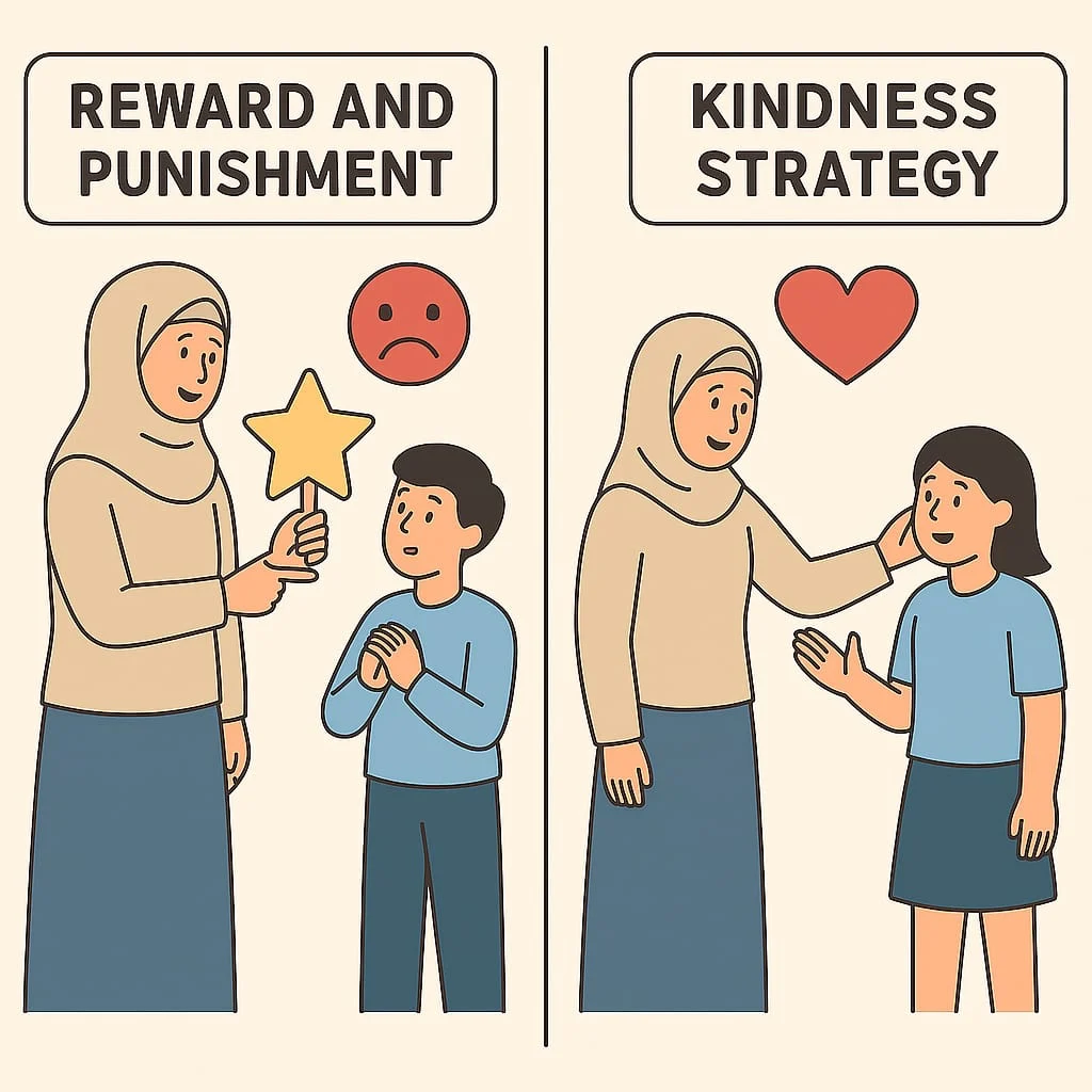 Dalam Islam, pendekatan reward and punishment (targhib dan tarhib) dan kindness strategy (rahmah, ihsan, dan hikmah) bukanlah dua kutub yang saling bertentangan, melainkan bagian dari satu kesatuan yang saling melengkapi dalam mendidik dan membentuk karakter manusia.