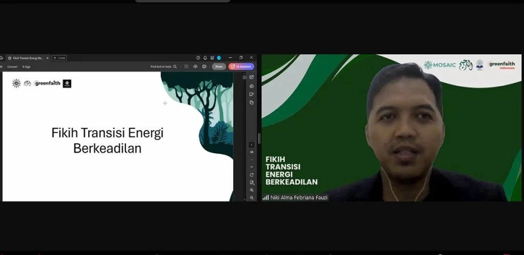 Dalam kajian daring “Fikih Transisi Energi yang Berkeadilan” yang digelar pada Ahad (26/5/2025 oleh Mosaic, GreenFaith Indonesia, dan Majelis Tarjih dan Tajdid PP Muhammadiyah, para ustaz dan ustazah alumni Shabran dari Sumatera Barat dan Jawa Barat diajak memahami fikih energi sebagai pendekatan etis dan spiritual dalam menghadapi krisis lingkungan dan mendorong transisi energi yang adil dan berkelanjutan.