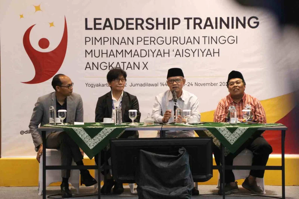 Ketua Umum Pimpinan Pusat Muhammadiyah Haedar Nashir membuka acara Leadership Training, Pimpinan Perguruan Tinggi Muhammadiyah ‘Aisyiyah (PTMA) Angkatan X, Senin (18/11/2024) malam di Student Dormitory Ballroom, Universitas Muhammadiyah Yogyakarta.