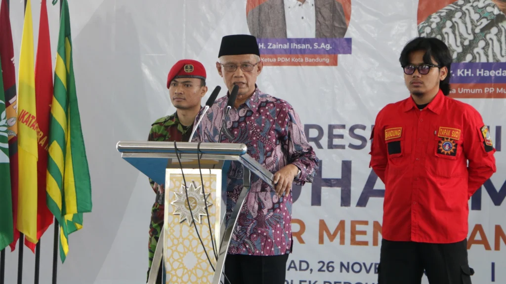 Hal itu ditegaskan Ketua Umum PP Muhammadiyah Prof. Haedar Nashir saat menghadiri Resepsi Milad 111 Tahun Muhammadiyah di Komplek Perguruan Muhammadiyah Antapani, Jalan Kadipaten Nomor 04-08 Kota Bandung, Minggu (26/11/2023).