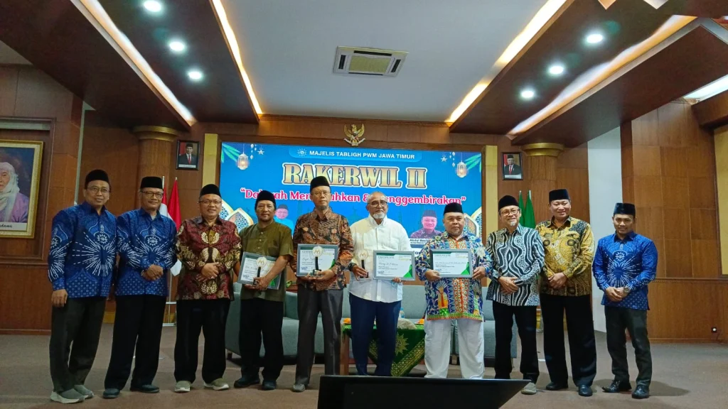 Penghargaan tersebut diserahkan dalam Rapat Kerja Wilayah (Rakerwil) II Majelis Tabligh Aula Mas Mansur Kantor Pimpinan Wilayah Muhammadiyah (PWM) Jatim, Jalan Kertomenanggal IV/1, Surabaya, Kamis (23/5/2024).
