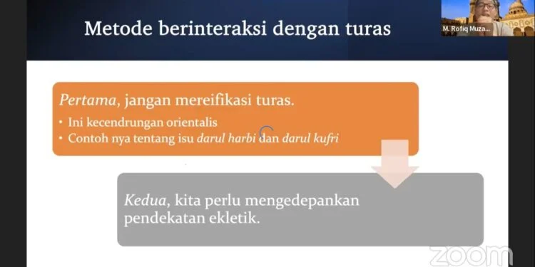 Dalam acara yang diselenggarakan PCINU Maroko pada Ahad (21/10), Sekretaris Umum Majelis Tarjih dan Tajdid PP Muhammadiyah Muhamad Rofiq Muzakkir membeberkan pola-pola penting dalam memperlakukan turas.