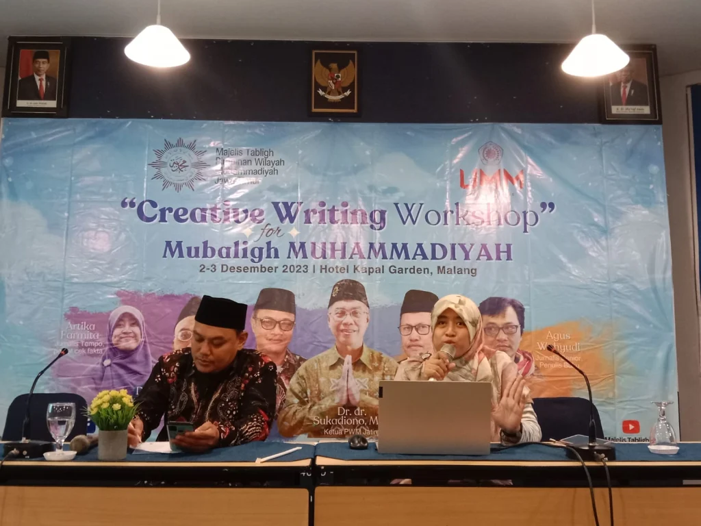 “Padahal banyak hal bisa dibagi untuk masyarakat, dan sya yakin itu menarik diceritakan,” ujar Artika Farmita, jurnalis Tempo, saat menjadi pemateri Creative Writing Workshop for Mubaligh Muhammadiyah yang diselenggarakan di Hotel Kapal Garden, Malang, Sabtu-Ahad (2-3/12/2023)