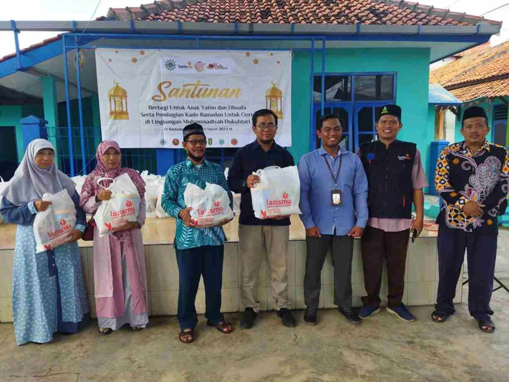 Kantor Layanan (KL) LazisMu Cabang Dukuhturi Kabupaten Tegal memberikan kado Ramadan kepada para Guru Muhammadiyah se-Cabang Dukuhturi, Jum’at (29/3/2024. Kegiatan yang berlangsung di halaman MTs Muhammadiyah Dukuhturi itu sebagai wujud apresiasi dan kepedulian terhadap pengabdian para guru.