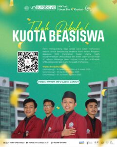 Program ini bertujuan untuk mencetak kader ulama Tarjih Muhammadiyah dengan fokus pada Prodi S1 Hukum Keluarga Islam di Ma’had Umar bin al-Khattab UMSurabaya. Tersedia kuota beasiswa 100% untuk 25 mahasiswa terpilih.