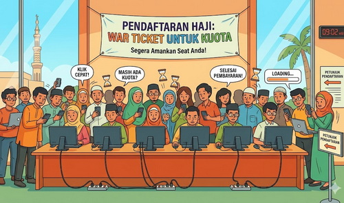 Istilah itu begitu lekat dengan dunia hiburan, perebutan tiket konser yang membuat layar ponsel panas, jemari bergetar, dan koneksi internet putus-sambung. Namun kini, ia disandingkan dengan ibadah haji: salah satu rukun Islam yang paling sakral dan penuh pengorbanan bagi umat Muslim Indonesia.