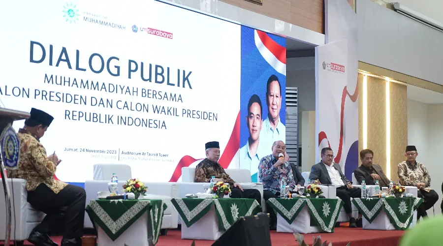 Ketua Pimpinan Wilayah Muhammadiyah (PWM) Jatim Dr. dr. Sukadiono MM yang berkesempatan sebagai panelis dalam uji public Capres-Cawapres, memberikan pertanyaan kepada Prabowo Subianto terkait kesehatan dan kesejahteraan sosial.