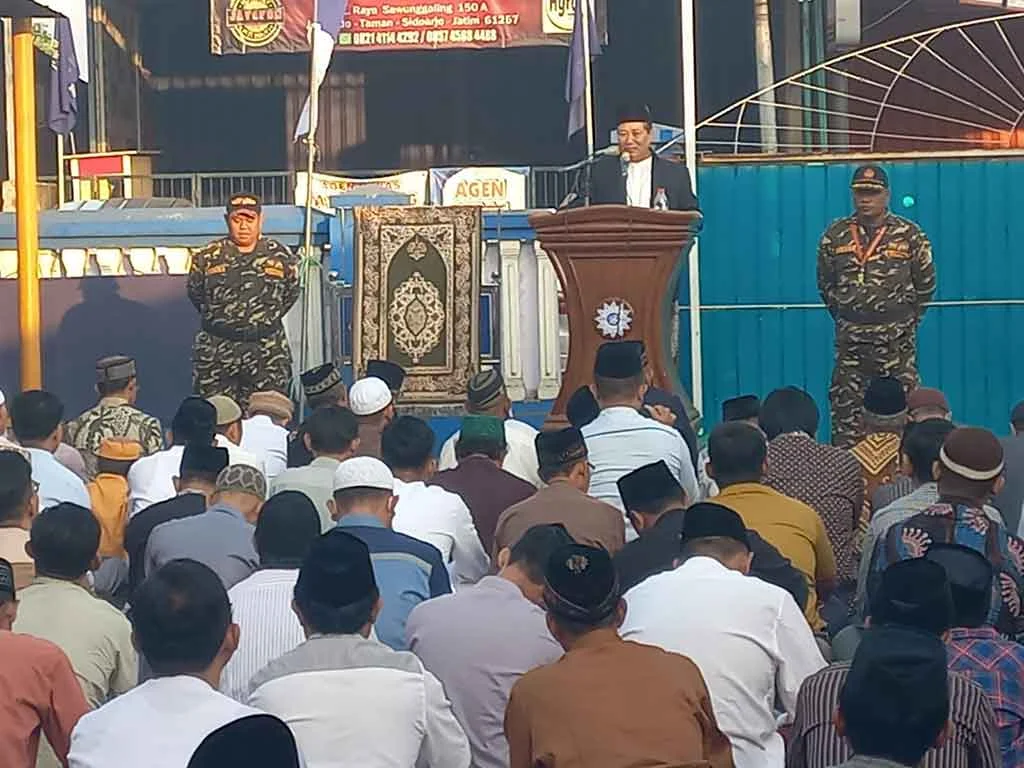 Hal itu tampak dalam pelaksanaan Salat Idul Adha di Halaman Masjid Al Mukminin Jemundo, Taman Sidoarjo, Rabu (28/6/2023).