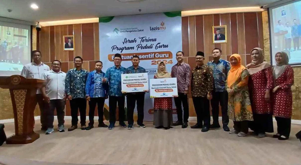 Penyerahan bantuan insentif guru dilakukan secara simbolis kepada penerima manfaat oleh Ketua Badan Pengurus Lazismu Pusat, Ahmad Imam Mujadid Rais dan mitra kolaborasi Lazismu Unit Pengelola Zakat (UPZ) Bank Permata Syariah diwakili Kepala Divisi Syariah dan Consumer Banking Rinaldi Agustian Aziz.