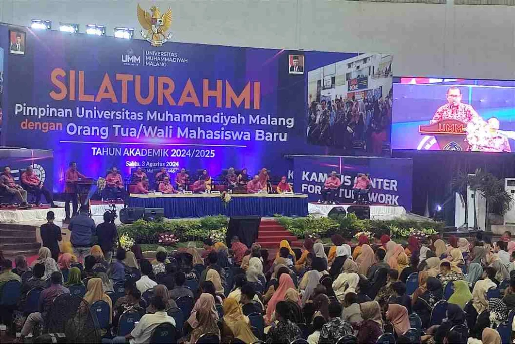 “Pertanyaan klasik yang seringkali ditanyakan oleh wali mahasiswa adalah kapan anak saya bisa lulus? Dan seringkali dijawab dengan kalimat ‘tergantung anaknya’, itu jawaban yang tidak bertanggung jawab. Tapi di sini, UMM pastikan, putra-putri bapak ibu sekalian itu pasti lulus tepat waktu selama 3,5 sampai 4 tahun, pasti mandiri, dan pasti bekerja,” tegasnya