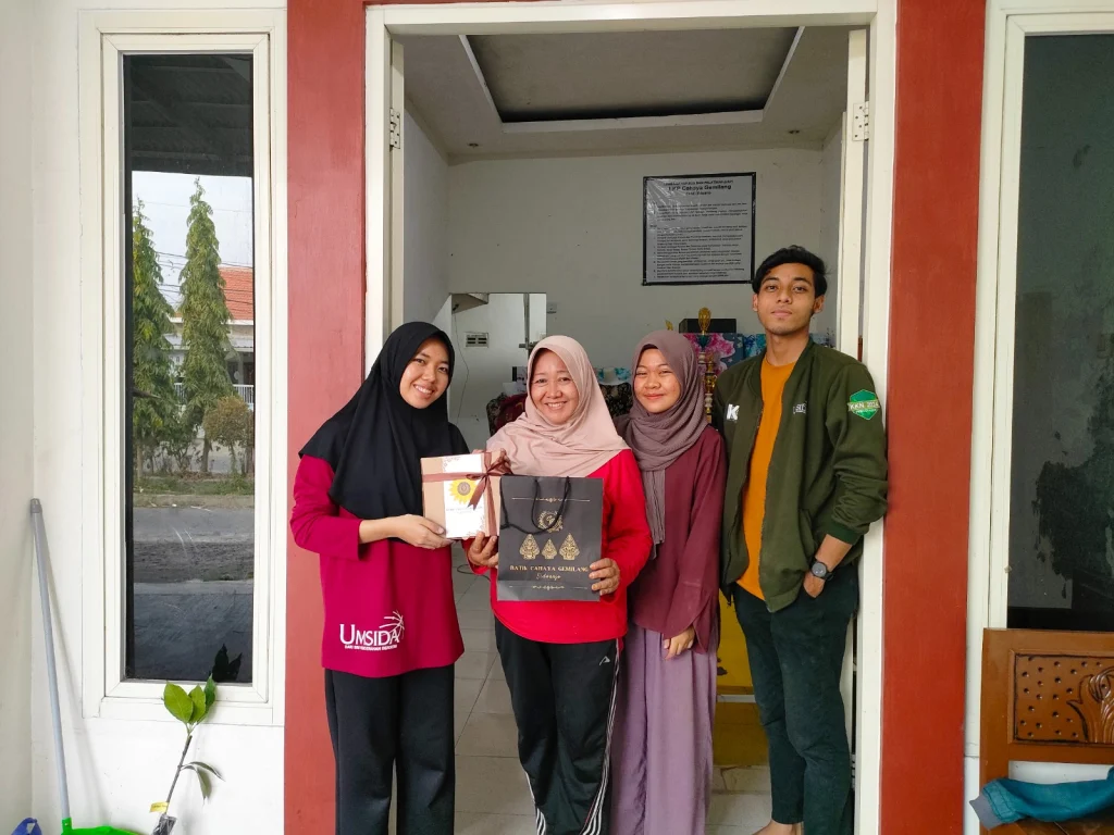 Mahasiswa Kuliah Kerja Nyata Pengabdian Kepada Masyarakat (KKN Abdimas) Universitas Muhammadiyah Sidoarjo (Umsida) yang berbasis di Desa Kalipecabean, Sidoarjo, melakukan redesain kemasan batik UKM Cahaya Gemilang.