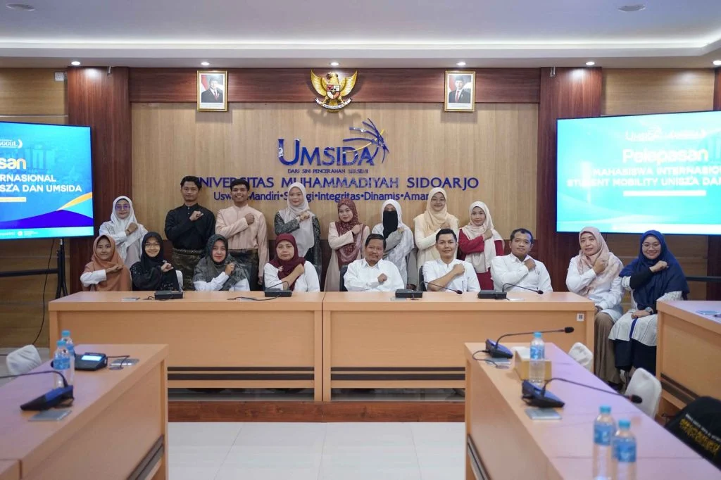 Fakultas Agama Islam Universitas Muhammadiyah Sidoarjo (Umsida) melepas 10 mahasiswa dari program studi Pendidikan Agama Islam (PAI) dan Pendidikan Bahasa Arab (PBA) yang akan mengikuti program international student mobility di Universiti Sultan Zainal Abidin (UniSZA) Malaysia pada Jumat (10/1/2025).