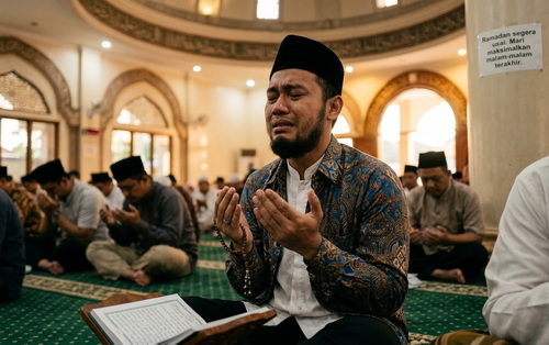 Maka jangan sampai kita menjadi orang yang semangat di awal, namun lemah di akhir. Bisa jadi kesuksesan Ramadan justru ditentukan di malam terakhirnya. Semoga Allah memberikan kepada kita husnul khatimah dalam Ramadan, menutupnya dengan amal terbaik, dan menerima seluruh ibadah kita.” Āamīin…