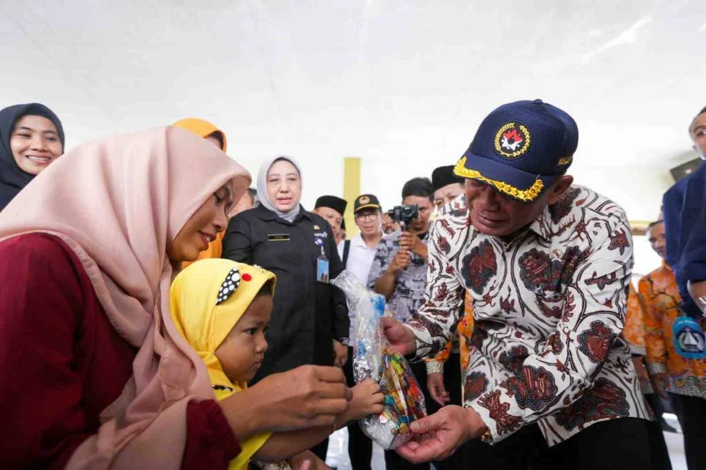 Dalam kesempatan itu Menko Muhadjir berinteraksi dengan para ibu-ibu penerima manfaat. Dia memberikan pesan pada ibu-ibu yang membawa anak supaya menjaga gizi anak-anaknya supaya terhindar dari stunting.