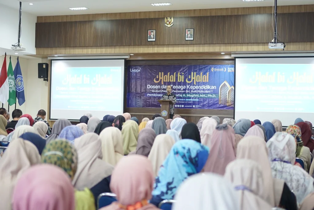 Universitas Muhammadiyah Sidoarjo (Umsida) menggelar kegiatan Halalbihalal bertemakan Syukuri Prestasi, Pantaskan Diri, Raih Ridho Illahi di Aula KH Mas Mansyur Lt 7 GKB 2 Umsida, Selasa (16/4/2024).