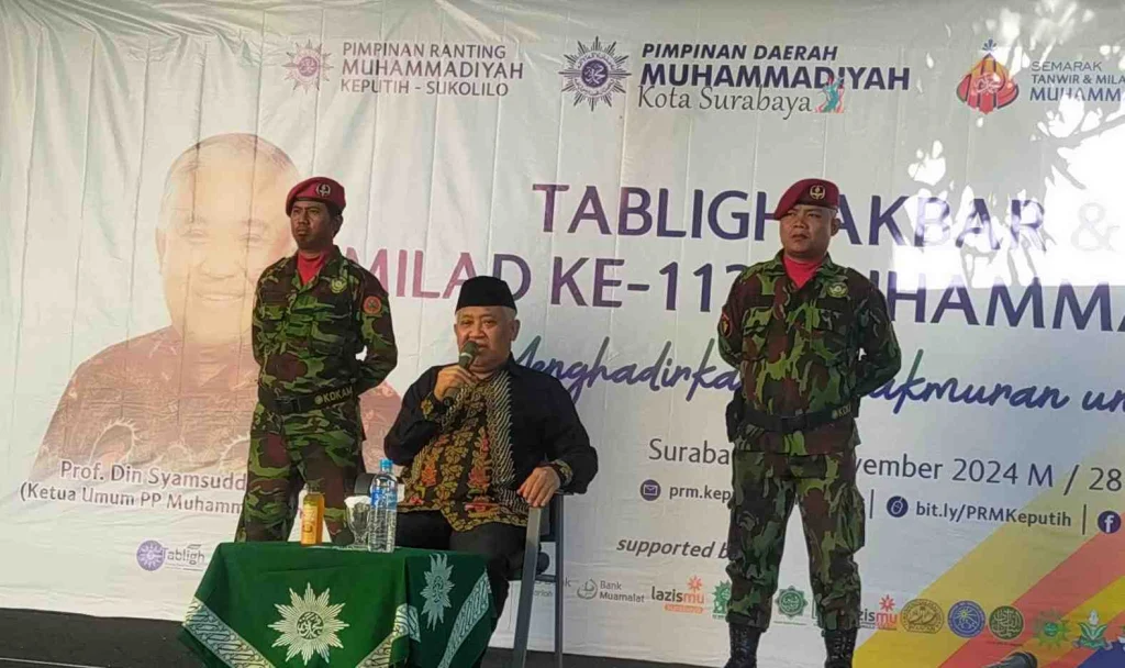 Pimpinan Daerah Muhammadiyah (PDM) Surabaya bekerja sama dengan Pimpinan Ranting Muhammadiyah (PRM) Keputih Cabang Sukolilo menggelar Tabligh Akbar dan Resepsi Milad ke-112 Muhammadiyah bertajuk “Menghadirkan Kemakmuran untuk Semua”, di SD Muhammadiyah 26 Surabaya, Sabtu (30/11/2024).