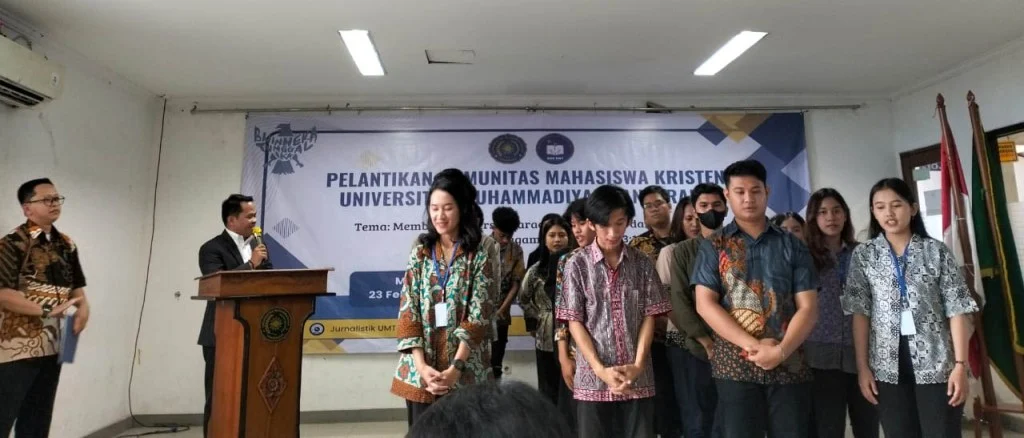 Universitas Muhammadiyah Tangerang (UMT) menggelar pelantikan dan pengukuhan Unit Kegiatan Mahasiswa (UKM) Komunitas Mahasiswa Kristen (KMK) UMT, Ahad (23/2/2025). Acara ini menjadi simbol komitmen kampus dalam menguatkan nilai inklusivitas dan toleransi, serta menghargai keberagaman agama di lingkungan pendidikan tinggi berbasis Islam. Di UMT, mahasiswa dari berbagai latar belakang agama memiliki kesempatan yang sama untuk belajar dan mendapatkan hak yang setara dalam pelayanan akademik.