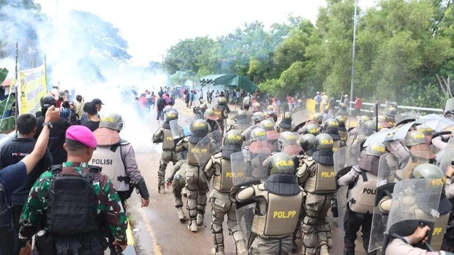 Bentrok pun pecah antara aparat dengan warga pada 7 September lalu. Aparat gabungan disebut memasuki wilayah perkampungan warga. Sementara warga memilih bertahan dan menolak pemasangan patok lahan sebagai langkah untuk merelokasi.