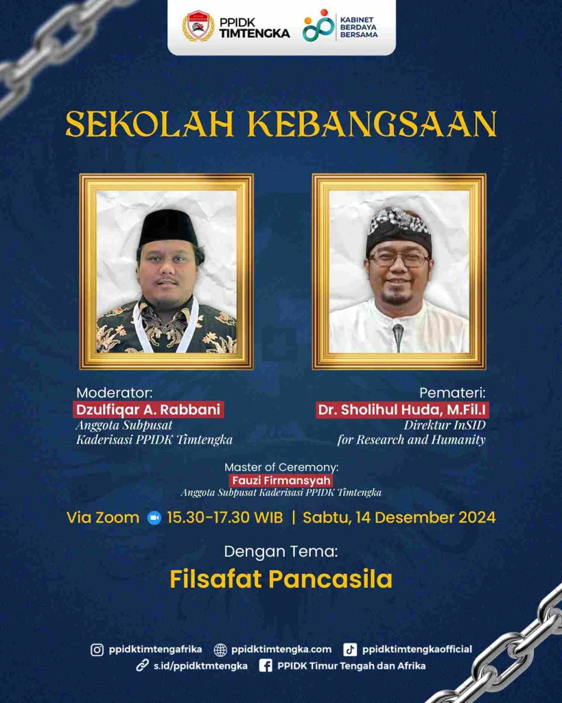 Dalam rangka sistematisasi perkaderan, Perhimpunan Pelajar Indonesia Dunia Kawasan Timur Tengah dan Afrika (PPIDK Timtengka) mengadakan Forum Sekolah Kebangsaan pada hari Sabtu (14/12/2024).
