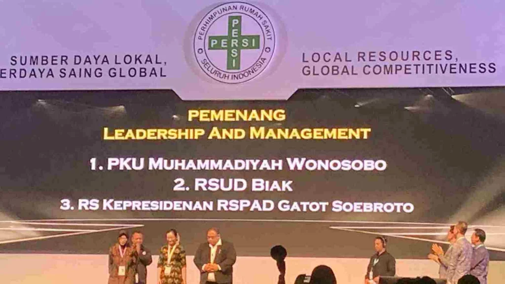 Nama terakhir, yakni RS PKU Muhammadiyah Wonosobo berhasil meraih juara 1 kategori Leadership and Management yang diumumkan pada malam anugerah di Jakarta Convention Center (JCC), Sabtu (21/10).