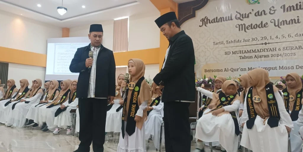 Salah satu peserta Khotmul Qur’an dan Imtihan ke-3 SD Muhammadiyah 6 Gadung (SD Musix) Surabaya mengalami kendala saat uji publik, membuat para tamu undangan ikut tegang. Acara ini berlangsung pada Sabtu, 31 Mei 2025.