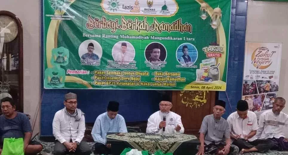 Ketua Takmir Masjid Al Muttaqien Ustadz Amiruddin, M.Pd dalam sambutannya mengucapkan terimakasih digelarnya acara berbagi berkah kerja sama PRM Mangundikaran, BAZNAS dan LAZISMU.