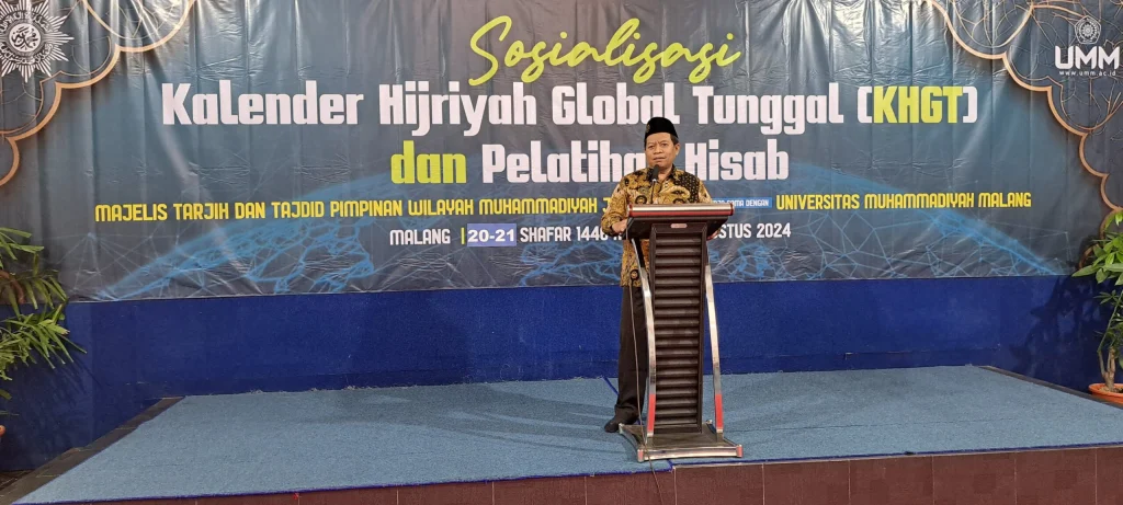 Penegasan tersebut disampaikan Sekretaris PWM Jatim Prof. Dr. Biyanto saat membuka kegiatan sosialisasi dan pelatihan Hisab Kalender Hijriyah Global Tunggal (KHGT) di Universitas Muhammadiyah Malang (UMM), Sabtu (24/8/2024). Program ini diinisiasi oleh Majelis Tarjih dan Tajdid (MTT) PWM Jawa Timur.
