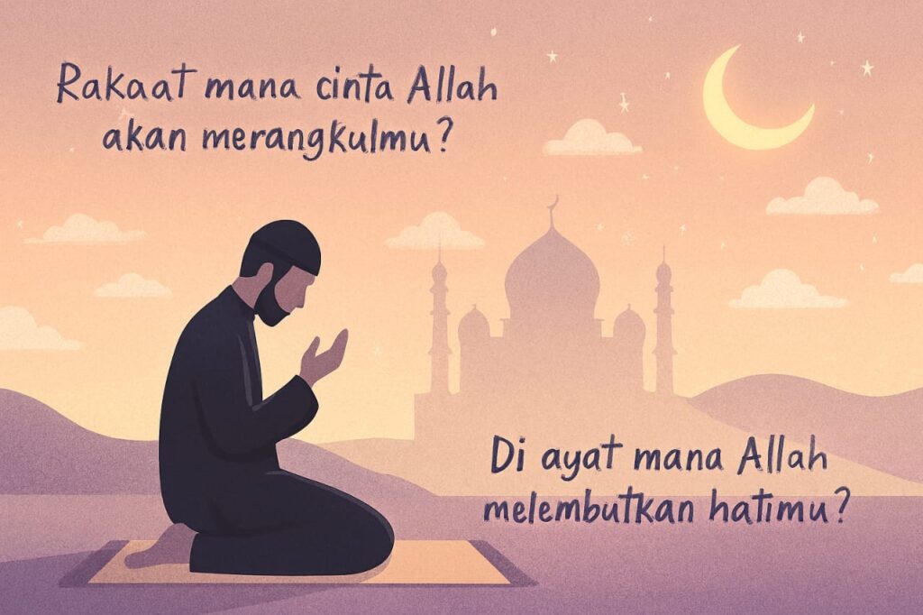 Ini bukan pertanyaan fikih, tapi pertanyaan rasa, ruhani, dan kedekatan. Tidak ada satu rakaat atau satu ayat yang “pasti” untuk semua orang. Yang ada adalah momen ketika Allah membuka pintu hati, dan itu berbeda bagi setiap hamba.