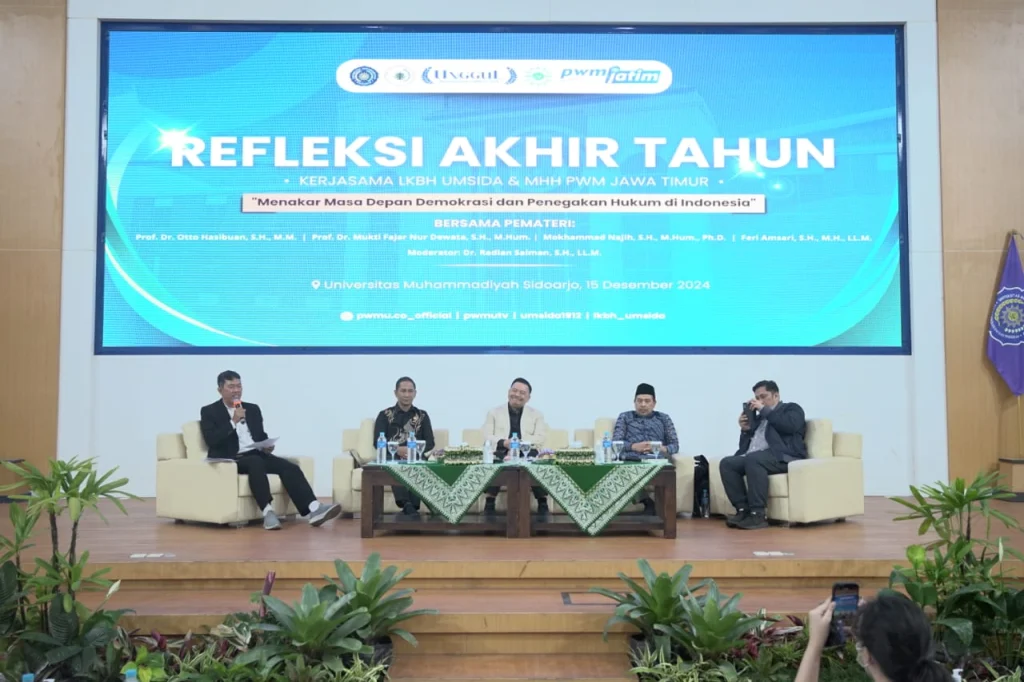 Lembaga Konsultasi dan Bantuan Hukum Universitas Muhammadiyah Sidoarjo (LKBH Umsida) bekerja sama dengan Majelis Hukum dan HAM Pimpinan Wilayah Muhammadiyah Jawa Timur (MHH PWM Jatim) menggelar acara Refleksi Akhir Tahun dengan tema “Menakar Masa Depan Demokrasi dan Penegakan Hukum di Indonesia.”