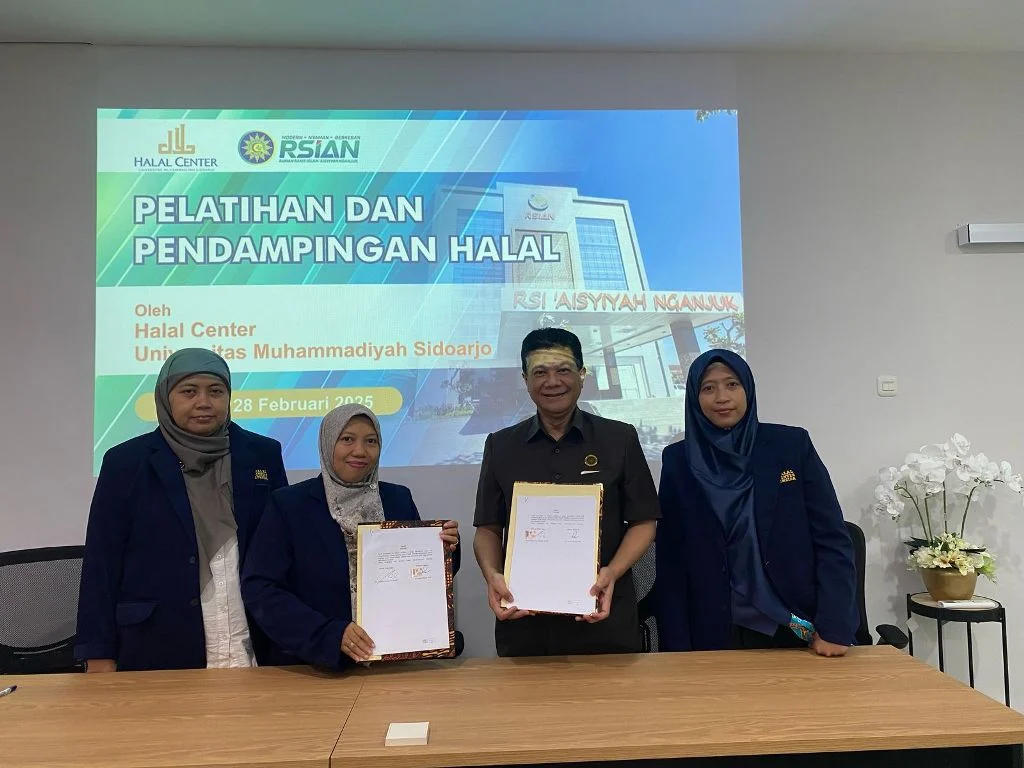 Untuk memastikan kualitas layanan kesehatan yang sesuai dengan prinsip syariah, Halal Center Universitas Muhammadiyah Sidoarjo (Umsida) menggelar pelatihan dan pendampingan sertifikasi halal di Rumah Sakit Islam Aisyiyah (RSIA) Nganjuk, pada Jumat (28/2/2025).