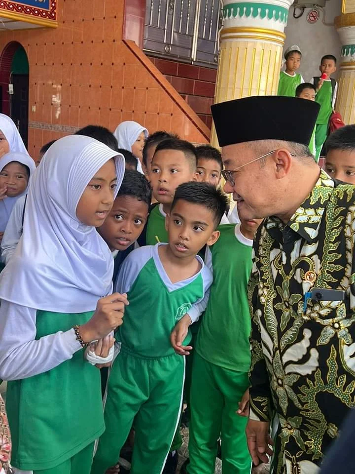 Melihat saya masuk, anak-anak bersalaman. Mereka tidak kenal saya. Salah seorang dari mereka dengan polos bertanya.
