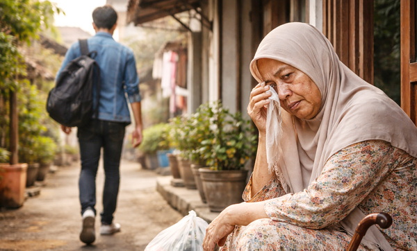 Kalimat itu terdengar biasa. Tapi bagi hati seorang ibu, itu seperti pisau. Ibunya terdiam. Air matanya jatuh. Ia tak berkata apa-apa lagi.