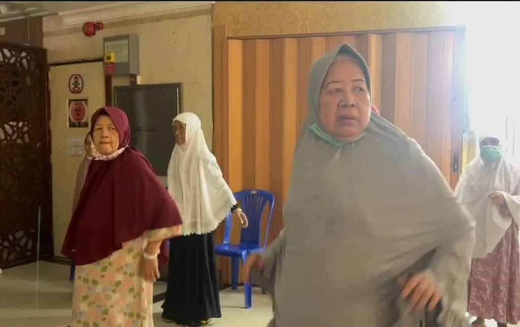 Salah satu peserta yang mencuri perhatian adalah Fauzi Nurdin, jemaah berusia 80 tahun. Meski fisiknya tak lagi sekuat dahulu, ia tetap berusaha mengikuti setiap gerakan, dengan senyum lebar menghiasi wajah. Semangatnya tak bisa disembunyikan—semangat yang lahir dari kerinduan mendalam untuk menyempurnakan rukun Islam kelima.