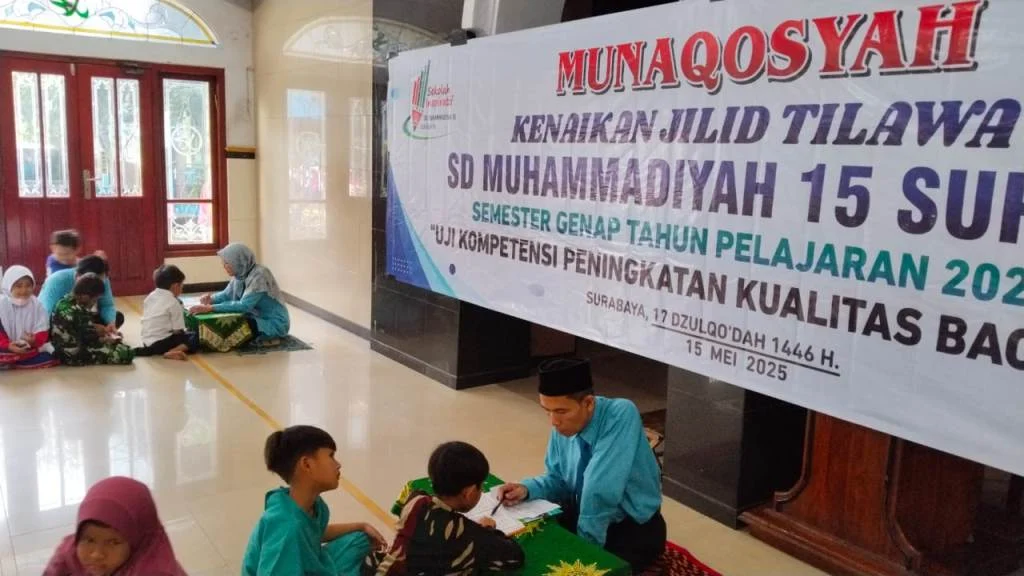 SD Muhammadiyah 15 Surabaya (SDM Limas) sebagai Sekolah Inspiratif mengadakan Munaqosah Kenaikan Jilid Tilawati dengan mengangkat tema Meningkatkan Kualitas Siswa Siswi Dalam Membaca Al-Qur’an, Kamis (15/5/2025) di masjid At Taqwa SDM Limas.