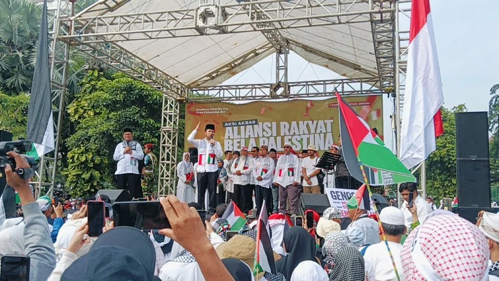 “Harapan kita semua, setelah aksi ini, Palestina—negeri para nabi—segera mendapatkan pertolongan dari Allah Subhanahu Wa Ta’ala, dan Dewan Perserikatan Bangsa-Bangsa segera memberikan sanksi kepada zionis Israel atas kebiadabannya selama ini,” tuturnya saat dijumpai usai aksi.