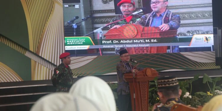 Sekretaris Umum Pimpinan Pusat (PP) Muhammadiyah, Abdul Mu’ti membuka secara resmi Tanwir I Nasyiatul Aisyiyah (NA) di Rumah Dinas Gubernur Provinsi Kalimantan Barat, Jumat (12/1/2024). Abdul Mu’ti mengapresiasi tema yang diangkat pada Tanwir I NA “Keluarga Muda Tangguh Kuatkan Indonesia.”