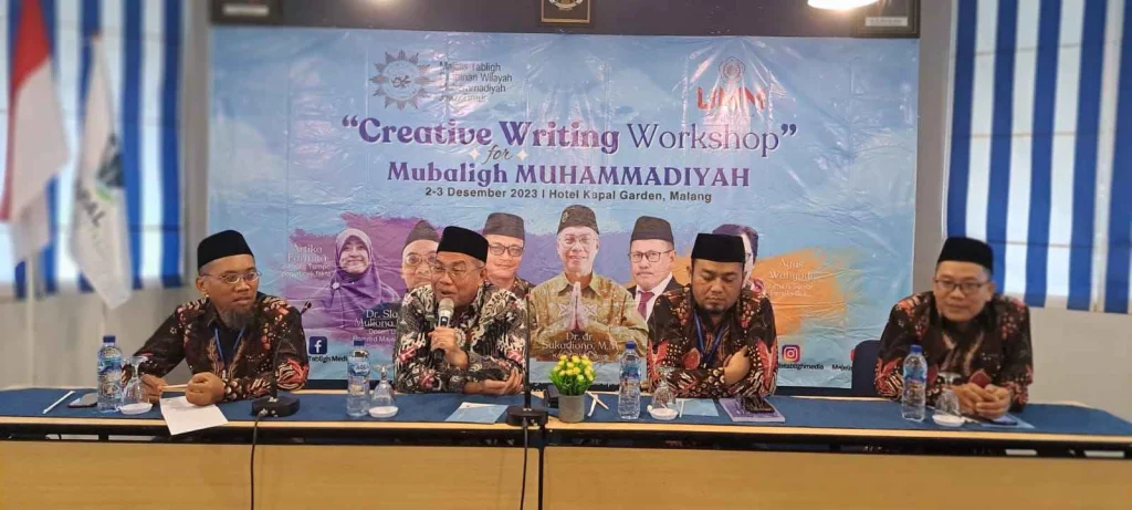Rangkaian Creatif Writing Workshop for Mubaligh Muhammadiyah berlangsung dua hari, Sabtu – Minggu (2- 3/12/2023) diikuti 50 peserta utusan dari Pengurus Daerah Muhammadiyah (PDM) se Jawa Timur. Selain menghadirkan nara sumber Dr Slamet Muliono Redjosari, juga wartawan Tempo Artika Farmita yang menyampaikan bahan tentang Travel Writing dan Agus Wahyudi, wartawan senior di Surabaya dengan bahan Jurnalisme Naratif. (ono)