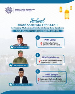 Menyambut Hari Raya Idulfitri 1447 Hijriyah, Pimpinan Cabang Muhammadiyah (PCM) Sambikerep, Kota Surabaya, menetapkan tiga lokasi pelaksanaan Salat Id yang akan digelar pada Jumat 20 Maret 2026.