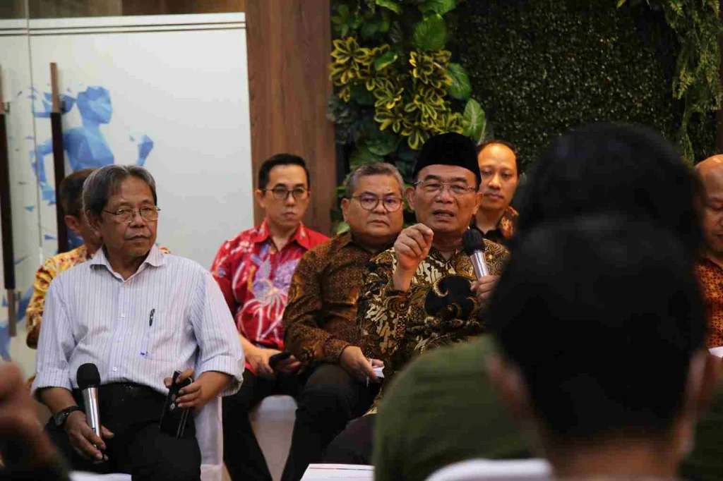 Menteri Koordinator Bidang Pembangunan Manusia dan Kebudayaan (Menko PMK) Muhadjir Effendy melakukan pertemuan dan berdialog dengan awak media massa di Ruang Media Center Kemenko PMK, pada Rabu (7/2/2024).