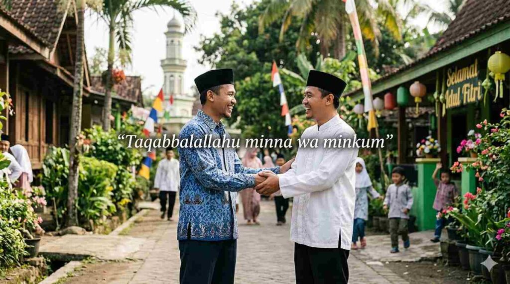 (semoga Allah menerima [amal] dari kami dan dari kalian). Tradisi ini berasal dari kebiasaan para sahabat Nabi saw)