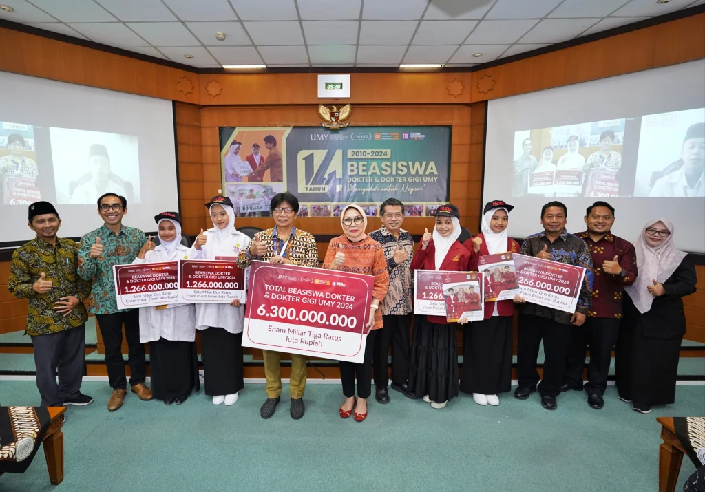Universitas Muhammadiyah Yogyakarta (UMY) memberikan Beasiswa Dokter dan Dokter Gigi yang pada Tahun Ajaran 2024/2025. Tahun ini beasiswa ini diberikan kepada 5 mahasiswa dengan total beasiswa Rp 6,3 miliar.