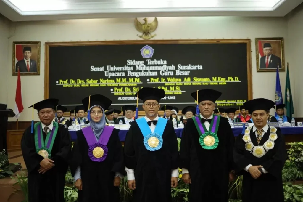 Universitas Muhammadiyah Surakarta (UMS) mengukuhkan tiga guru besar baru pada Senin (27/11/2023).